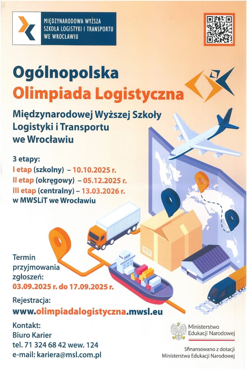 Z ogromną dumą informujemy, że uczeń naszej szkoły Kamil Przygodzki zakwalifikował się do drugiego etapu okręgowego Ogólnopolskiej Olimpiady Logistycznej. To prestiżowe wydarzenie gromadzi najlepszych młodych logistyków z całego kraju, a awans do kolejnego etapu świadczy o wyjątkowej wiedzy, zaangażowaniu i pasji naszego ucznia. Serdecznie gratulujemy Kamilowi tego osiągnięcia i trzymamy kciuki za dalsze sukcesy w kolejnych etapach olimpiady.