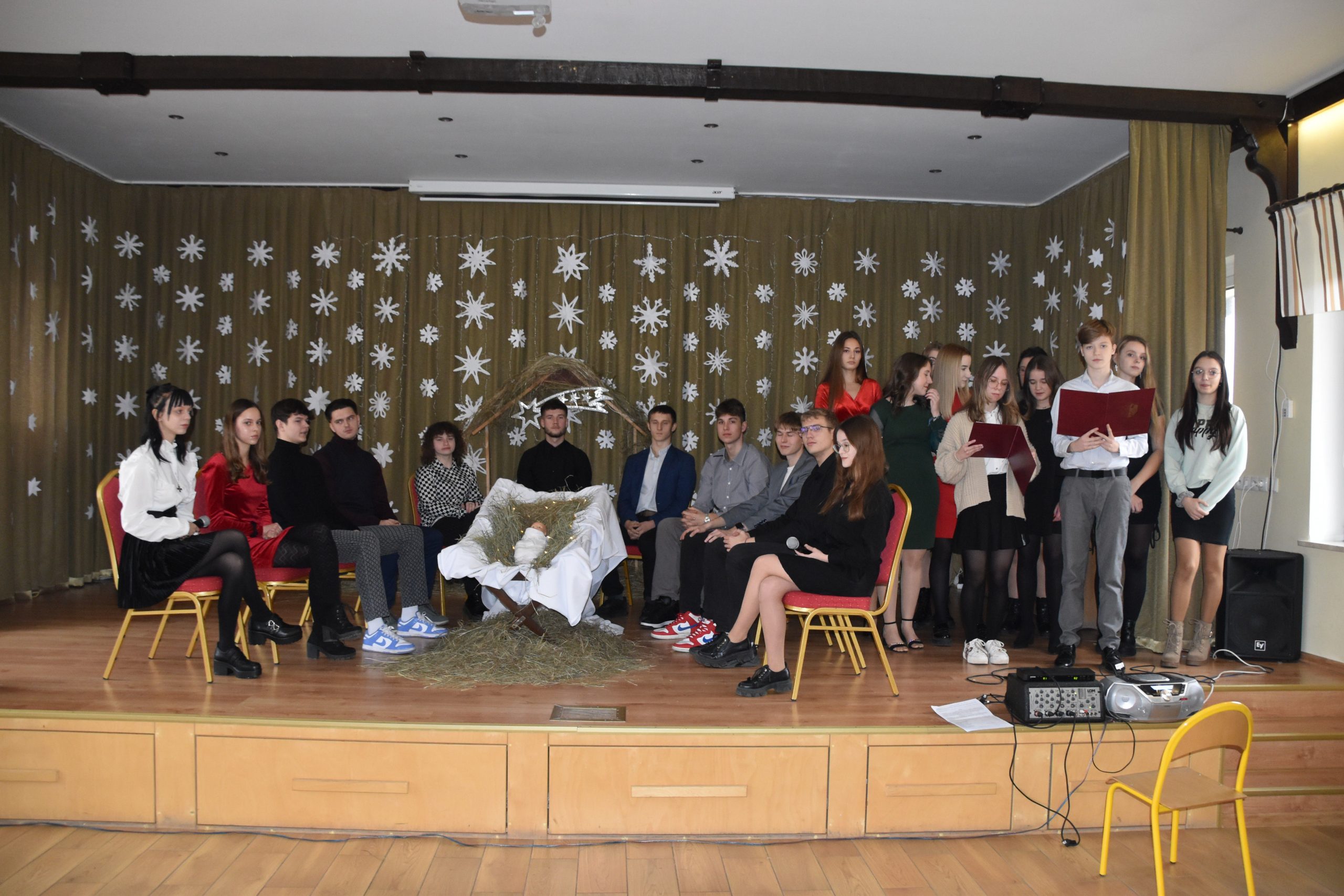 Młodzież zaprezentowała wybór najpiękniejszych kolęd i pastorałek przeplatanych kompozycją wierszy wielu polskich poetów. Występ nasycony tradycyjną symboliką przypomniał o istocie zbliżających się Świąt: opłatku jednoczącym ludzi, stole łączącym przy wspólnym posiłku nie tylko rodziny, a nade wszystko o miłości i nadziei przynoszonych przez Bożą Dziecinę.