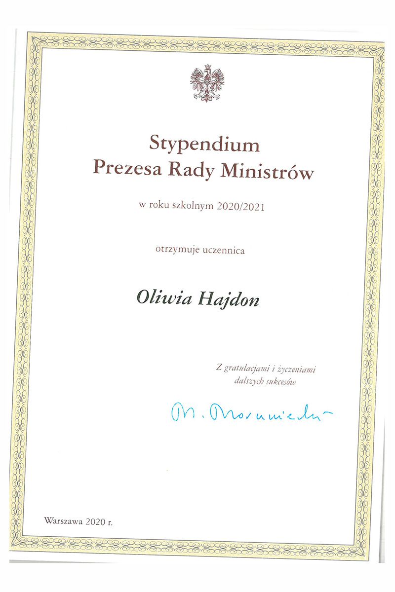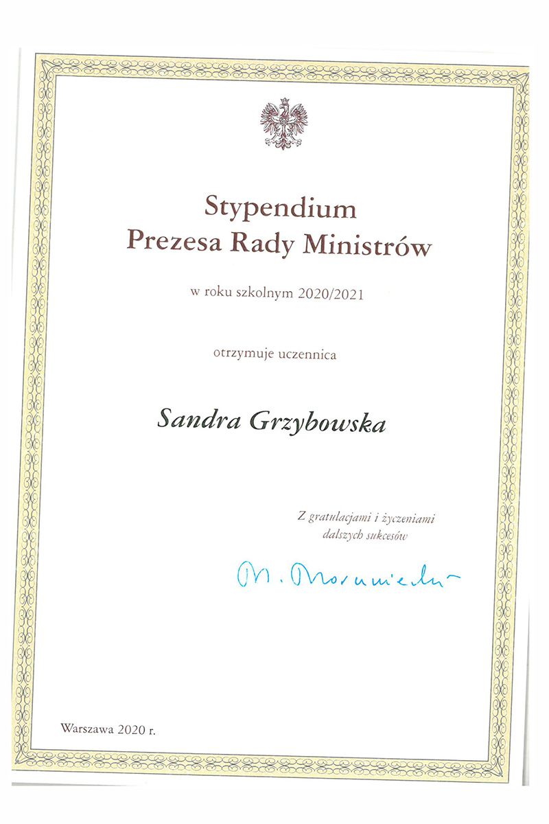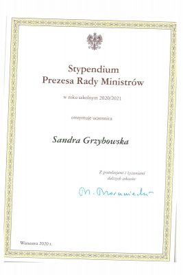 Stypendystki Prezesa Rady Ministrów 2020/2021