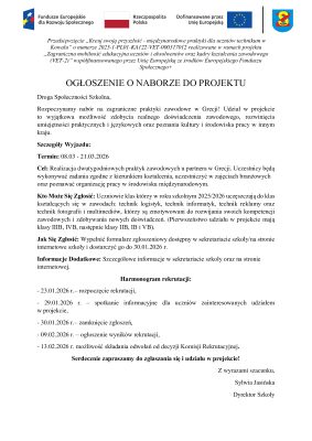 ,,Kreuj swoją przyszłość – międzynarodowe praktyki dla uczniów technikum w Kowalu’’ – projekt nr 2025-1-PL01-KA122-VET-000317012